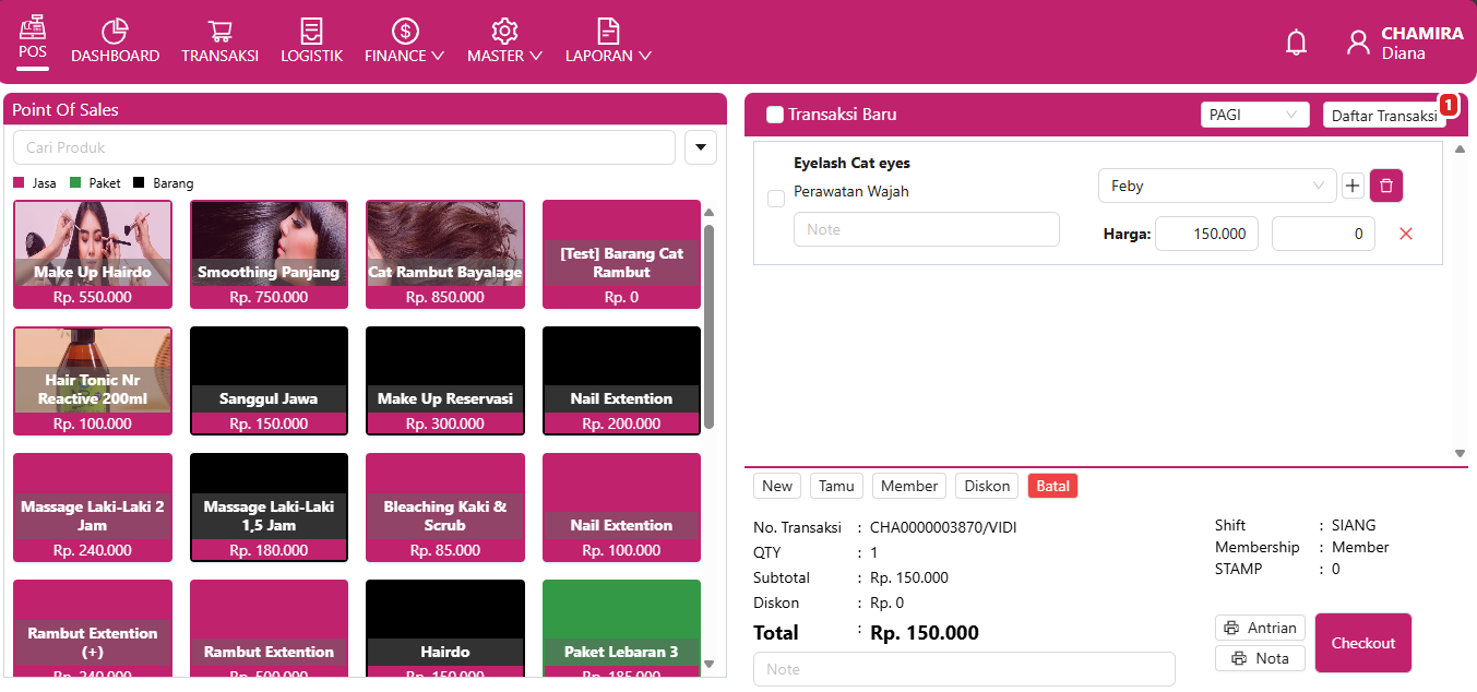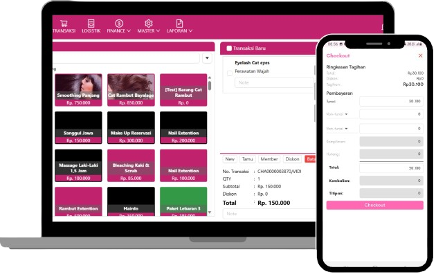 Kelola transaksi, layanan, dan janji temu dalam satu sistem yang mudah digunakan